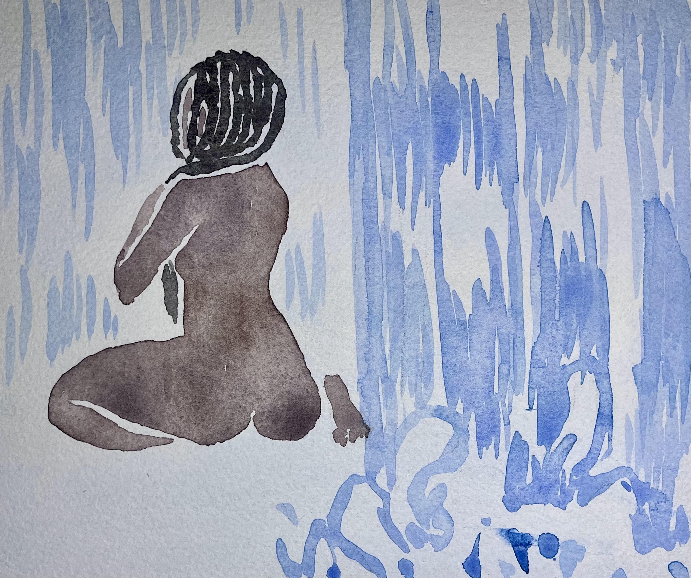 A delicate, sensual watercolour showcasing Sung Lee’s signature feminine lines and soft tones. Framed in natural oak and ready to hang.