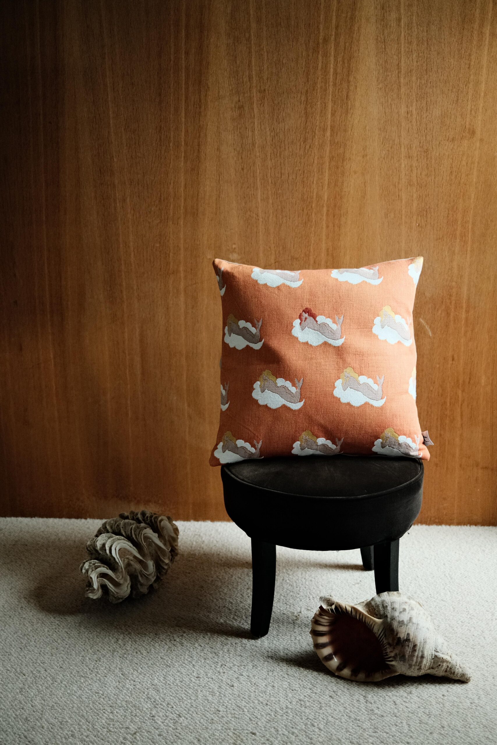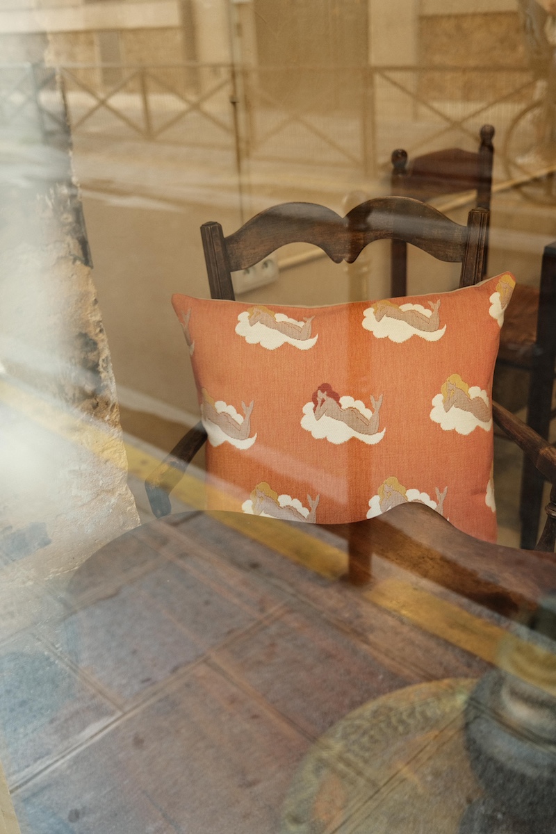 The ‘Cloud’ jacquard cushion, with its pastel pop colours, embodies the sense of freedom that defines Sung’s work. and is produced by one of the most prestigious manufacturers in France, renowned for its exceptional savoir-faire. Finished with a solid grige back