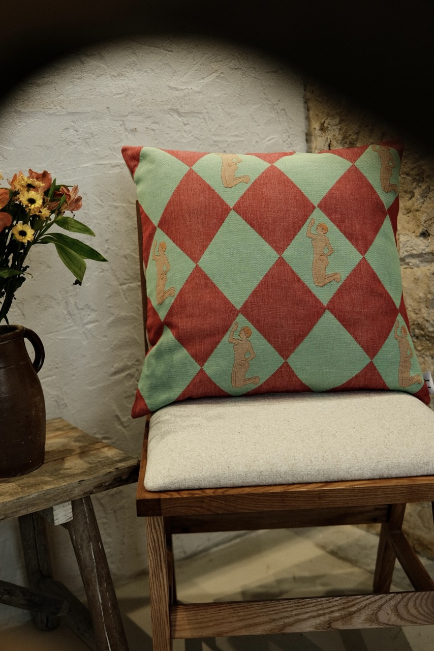 The Hello Jacquard Cushion reinterprets a classic motif with Sung’s signature lightness and humour. The jacquard is produced by one of the most prestigious manufacturers in France, renowned for its exceptional savoir-faire. Finished with a solid grige back.