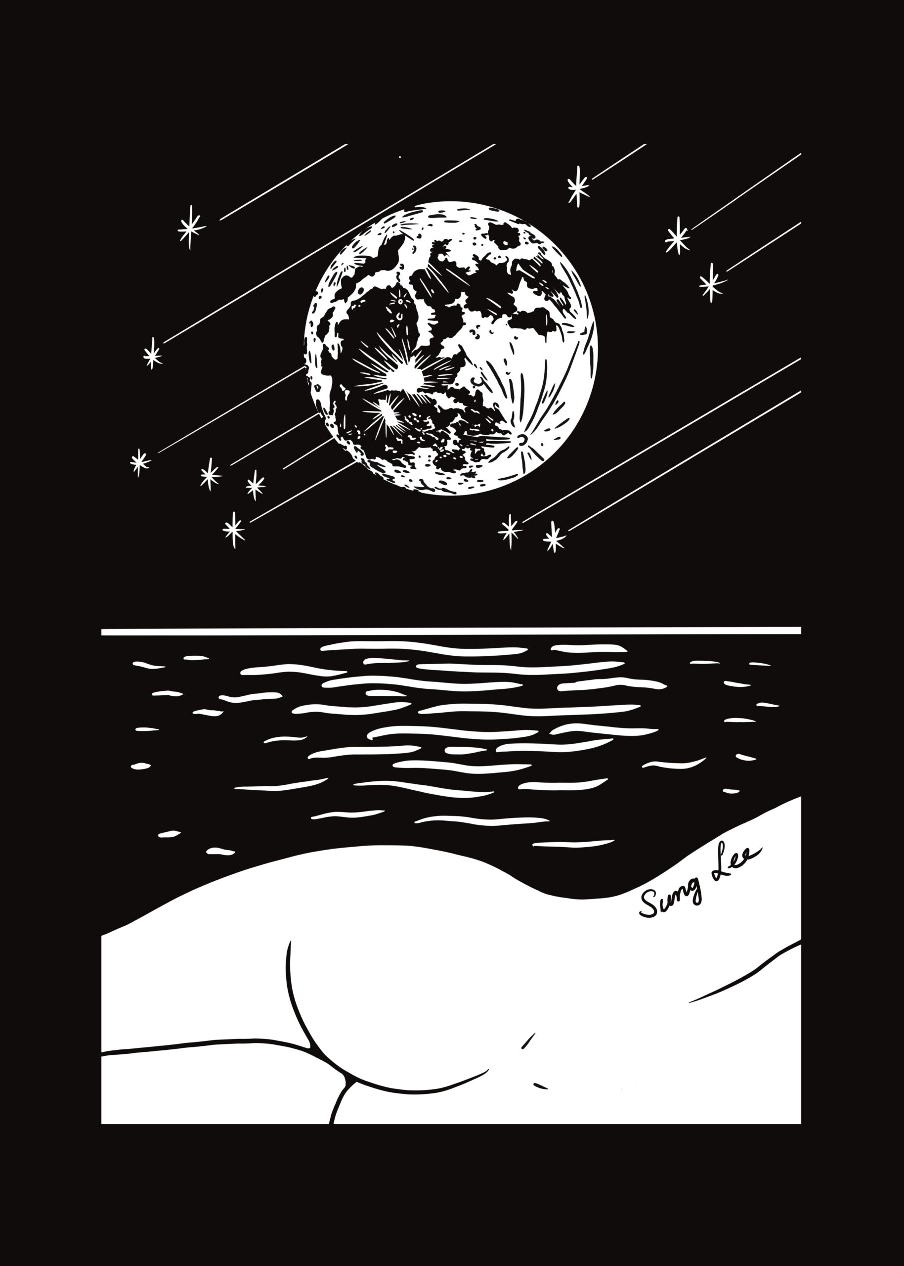 This piece is part of Sung Lee’s ongoing exploration of the female body through a minimal and expressive line. The composition combines simplicity and presence, creating a quiet yet striking visual impact.