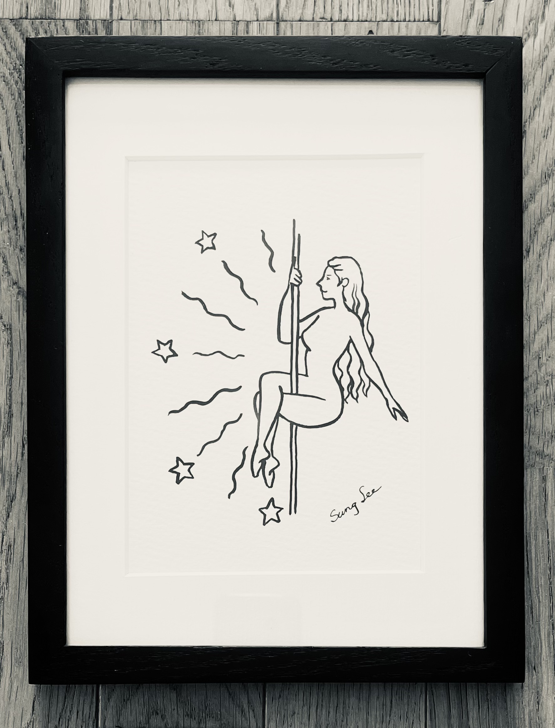 Ink on paper, framed